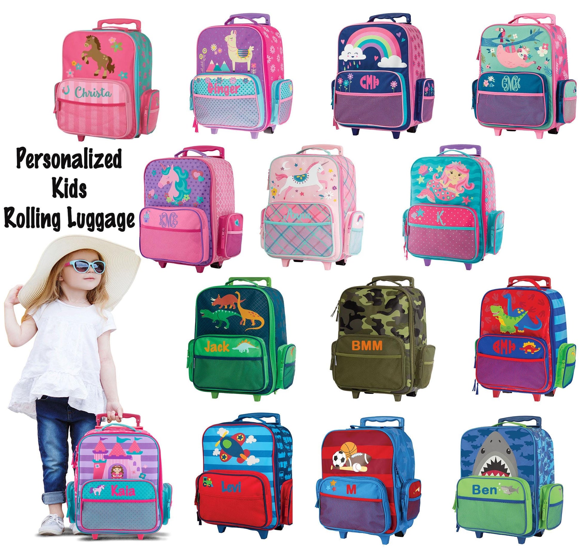 This listing is for a personalized kid's rolling luggage.